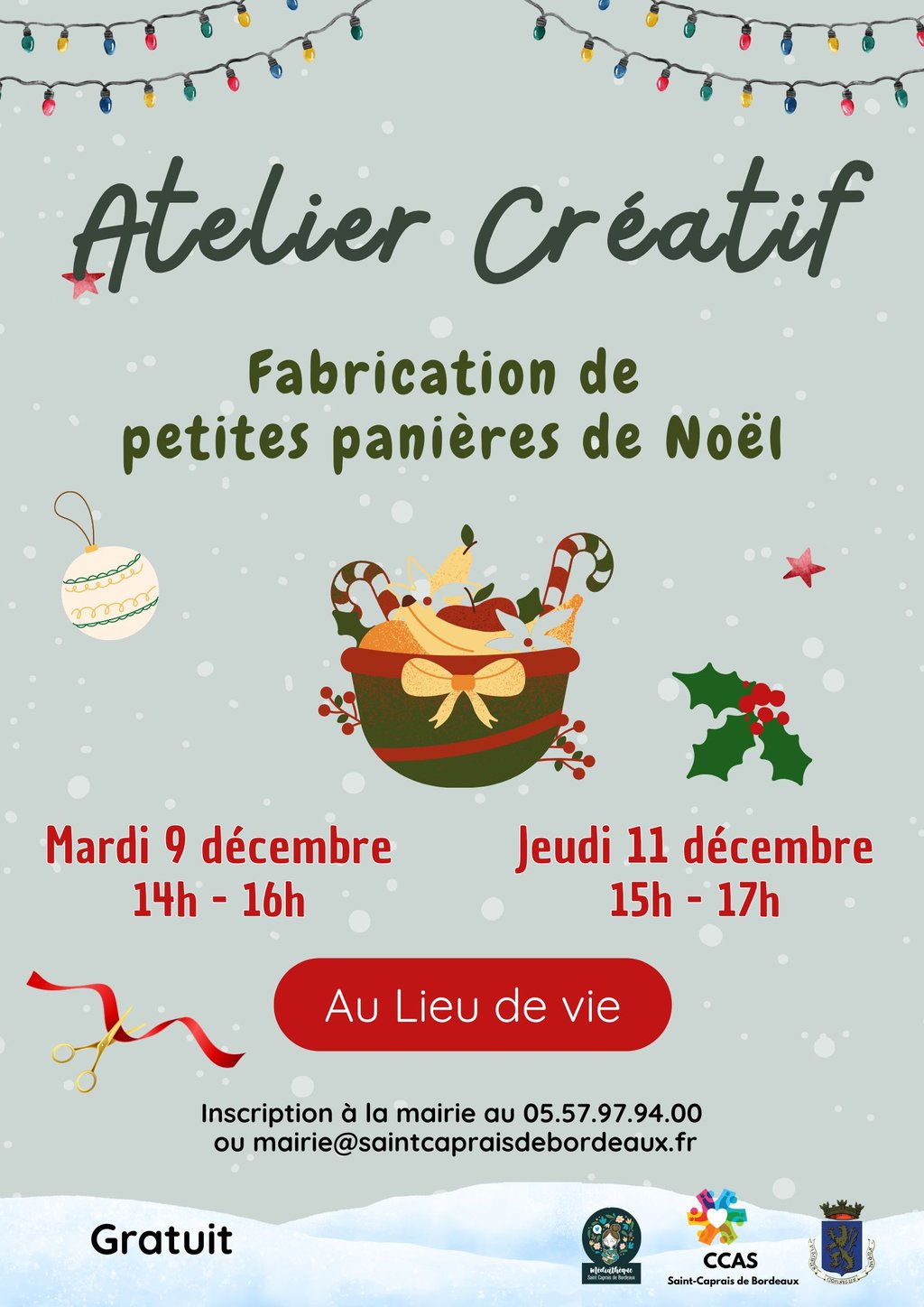 Le CCAS propose un atelier créatif de Noël pour laisser libre cours à votre imagination et fabriquer des panières de Noël.