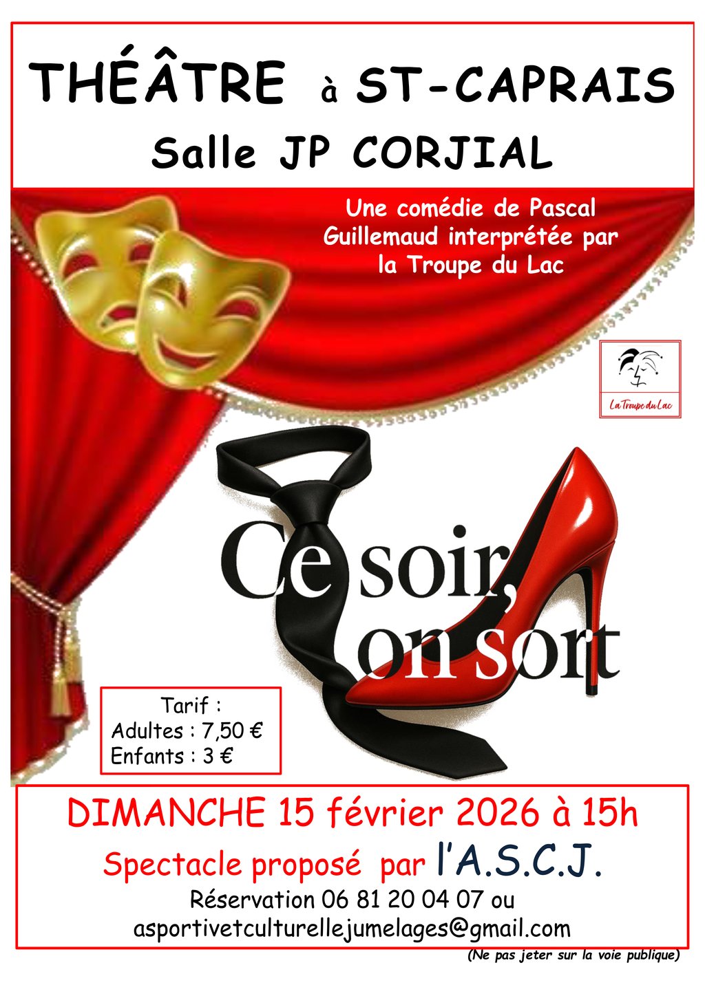Le Théâtre du Lac présente, "Ce soir, on sort", de Pascal Guillemeaud